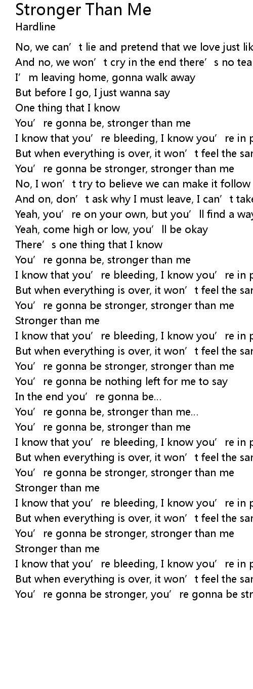 | You' re gonna be stronger, you' re gonna be stronger than me |