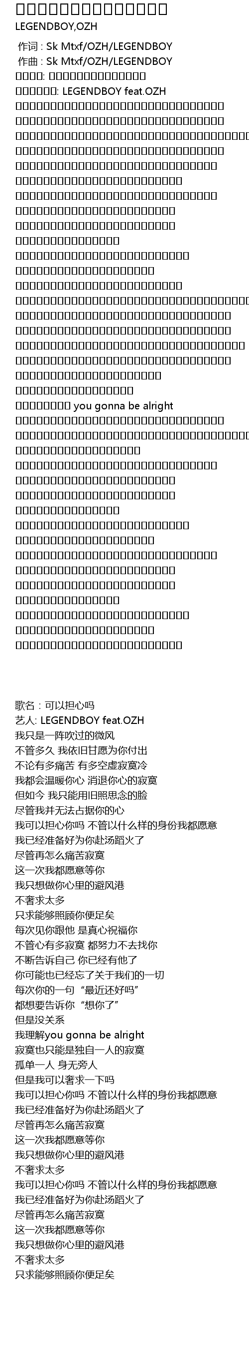 | [00:00.80] | 艺人: LEGENDBOY feat.OZH |