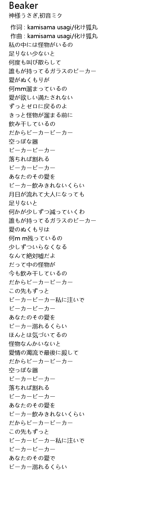 | [01:16.38] | ビーカービーカー |