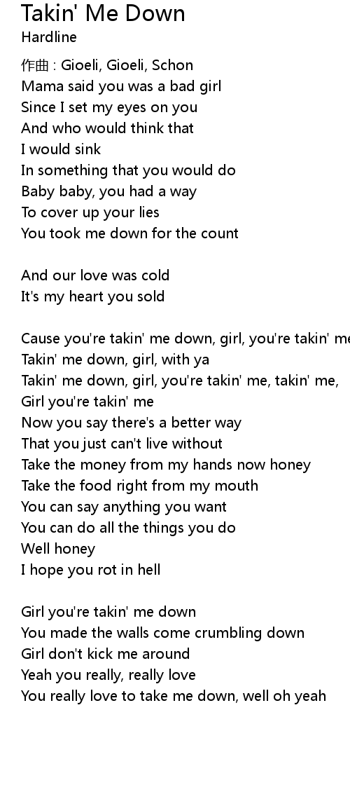 | Girl you're takin' me down | |