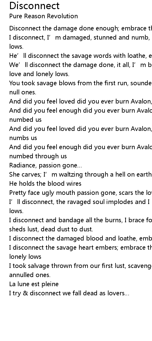 | Disconnect the damage done enough embrace the blows and lonely lows. | |