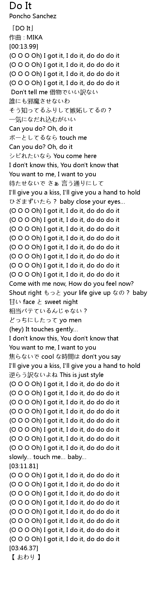 | [03:41.49] | (O O O Oh) I got it, I do it, do do do it |