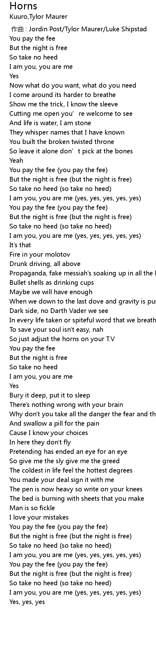 | [00:52.00] | You pay the fee (you pay the fee) |