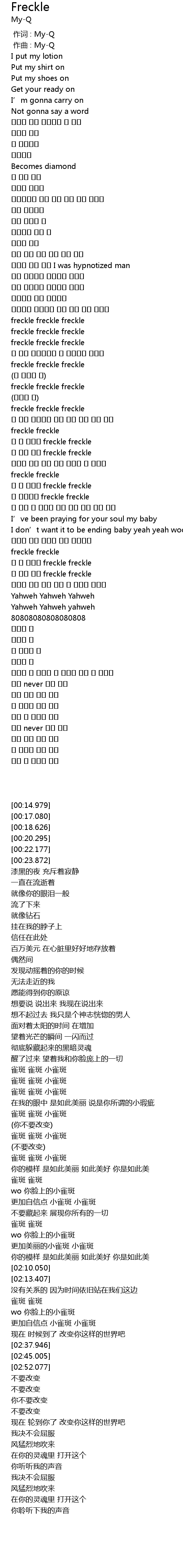 | [02:23.277] | 雀斑 雀斑 |