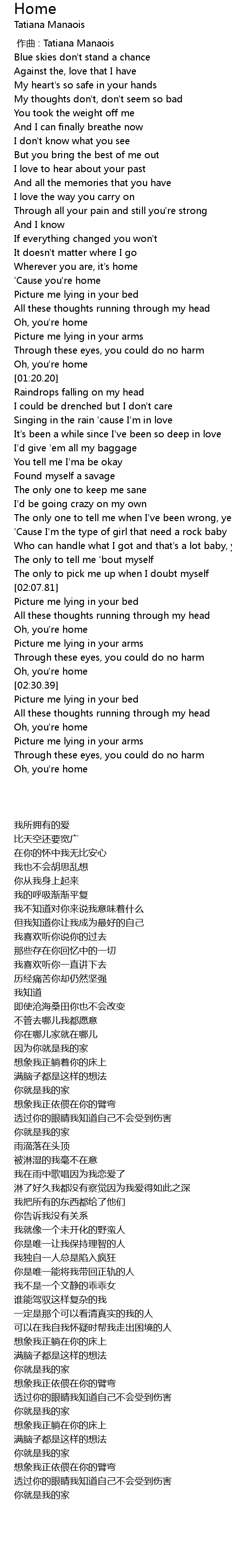 | [02:25.58] | 你就是我的家 |