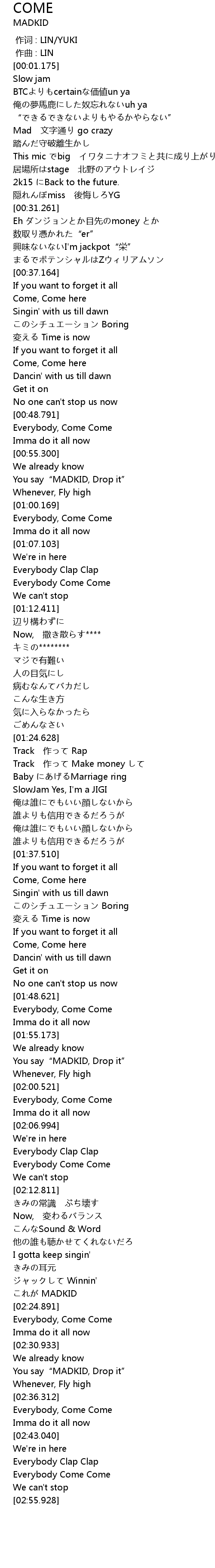 | [01:56.206] | You say" MADKID, Drop it" |