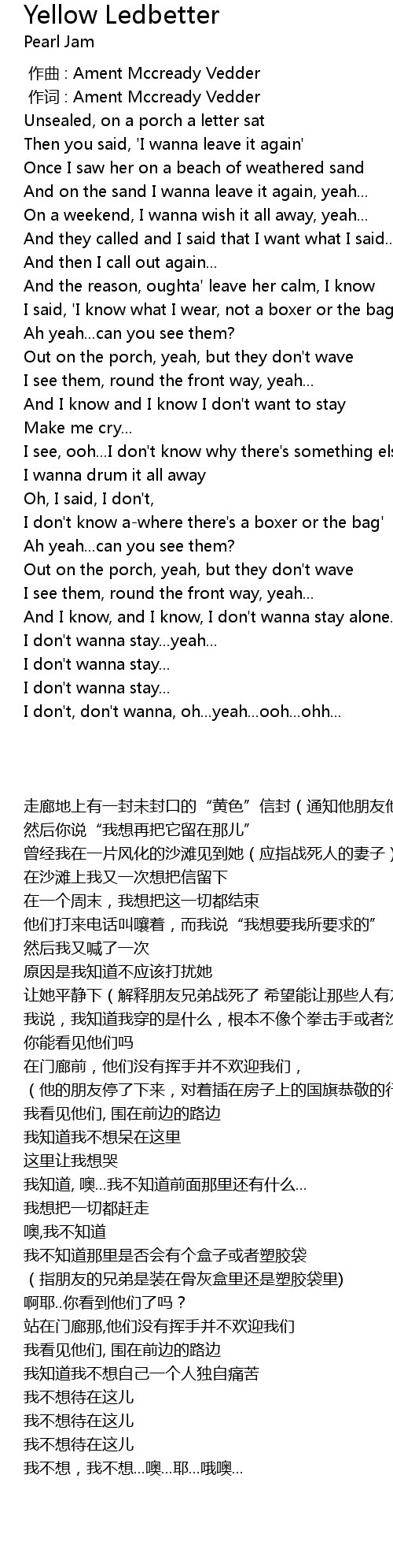 | [00:01.00] | 作词 : Ament Mccready Vedder |