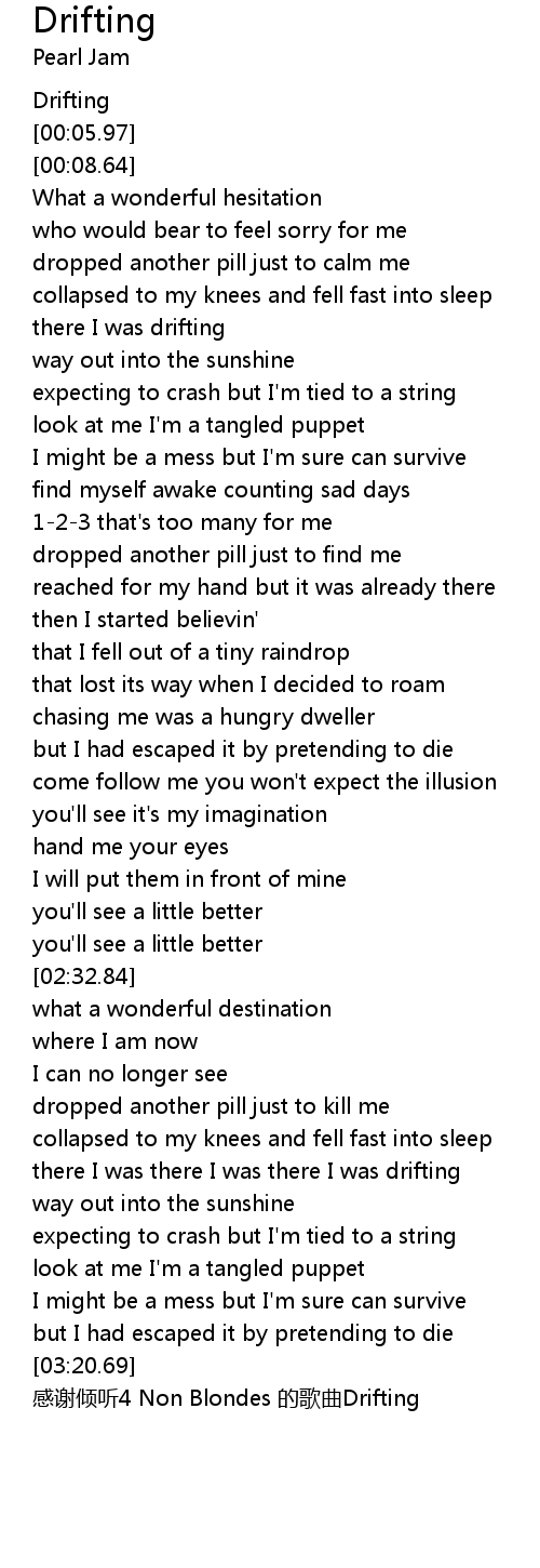 | [03:21.69] | 感谢倾听4 Non Blondes 的歌曲Drifting |