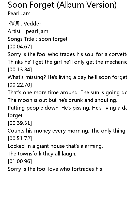 | [00:05.61] | Sorry is the fool who trades his soul for a corvette. |