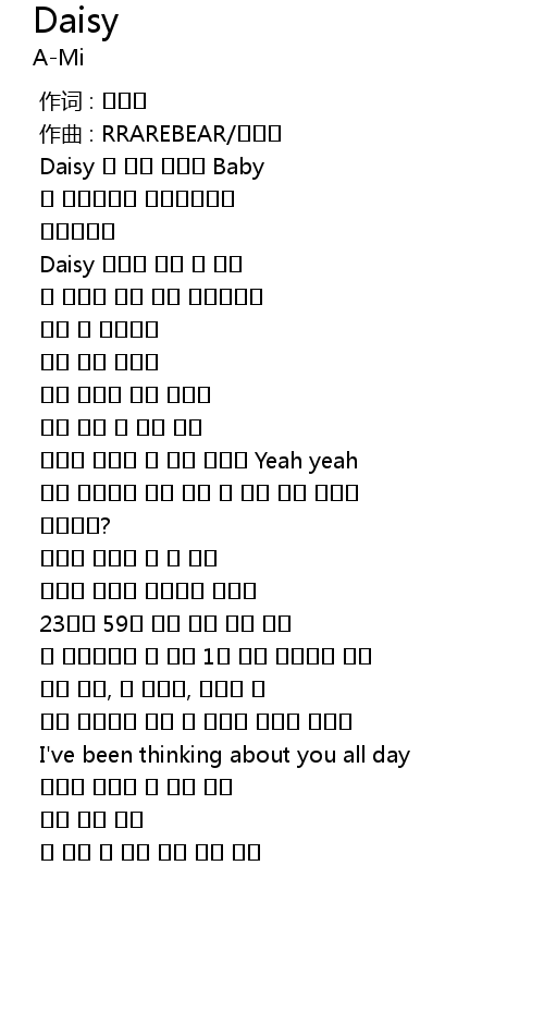 | [00:33.313] | Daisy 내 맘을 열어준 Baby |
