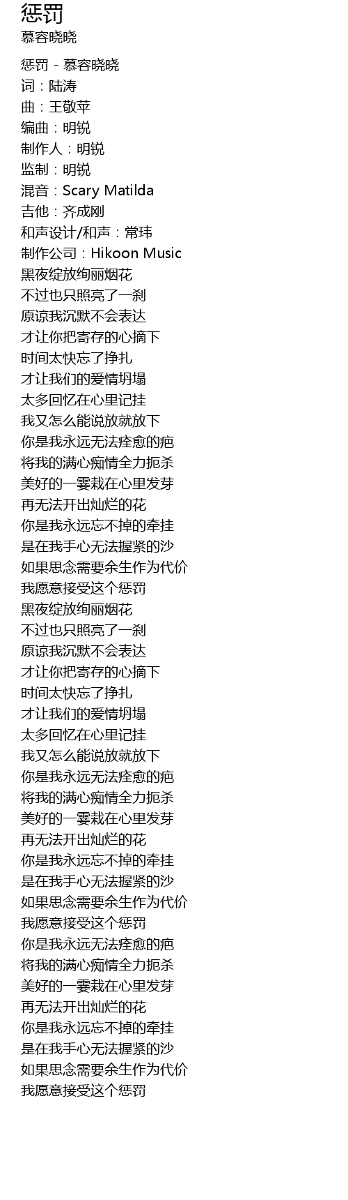 | [00:01.45] | 惩罚 - 慕容晓晓 |
