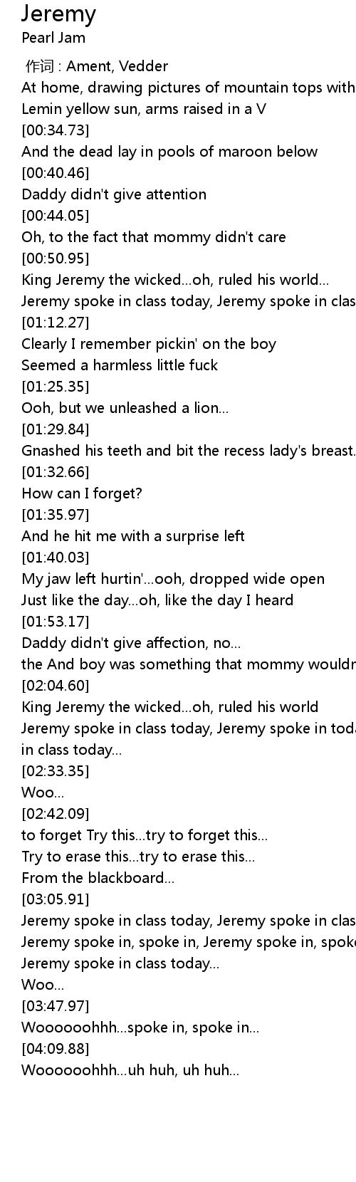 | [03:33.89] | Jeremy spoke in class today... |