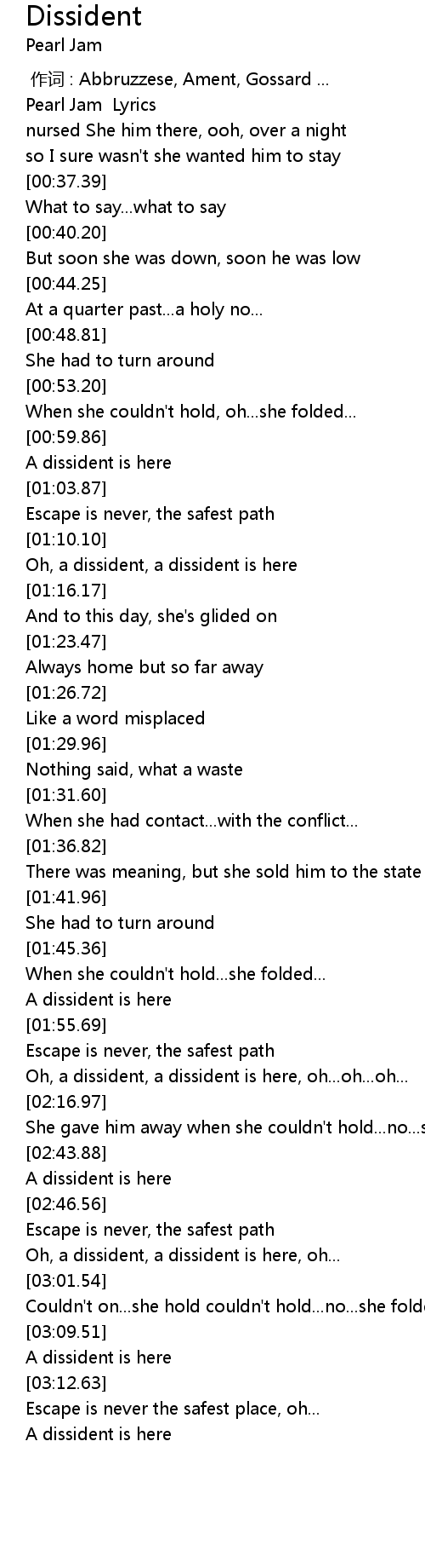| [02:54.67] | Oh, a dissident, a dissident is here, oh... |