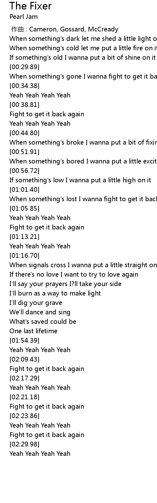 | [02:00.20] | Yeah Yeah Yeah Yeah |