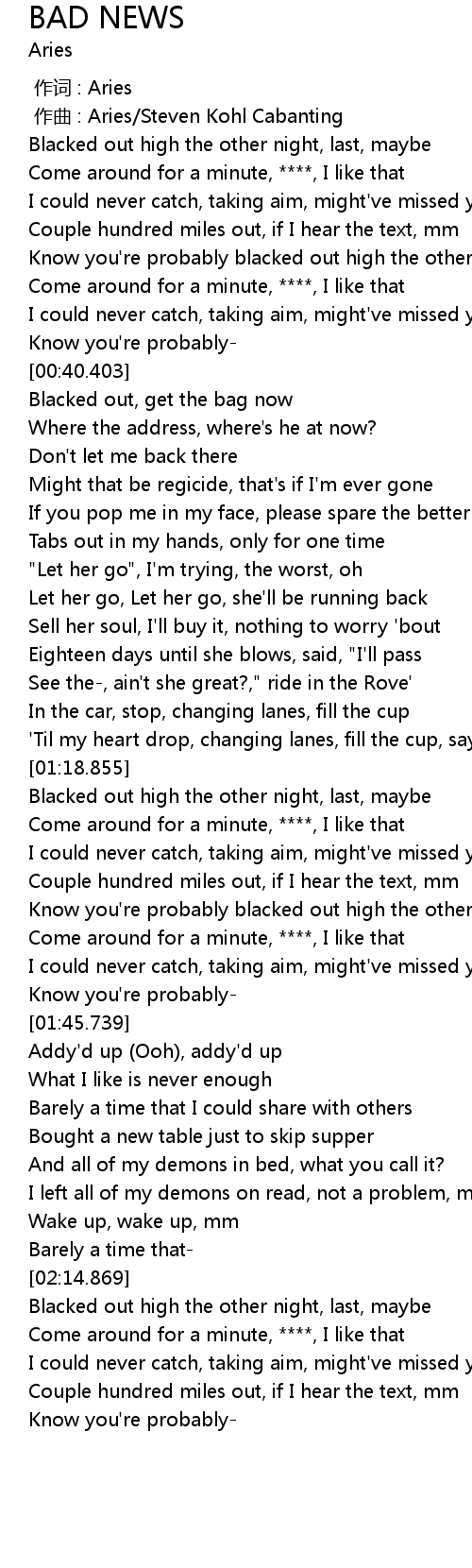 | [01:33.498] | Know you're probably blacked out high the other night, last, maybe |