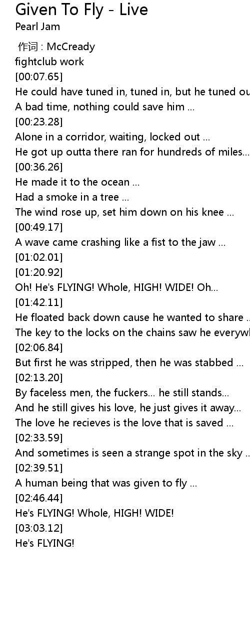| 歌曲 | Given To Fly - Live |