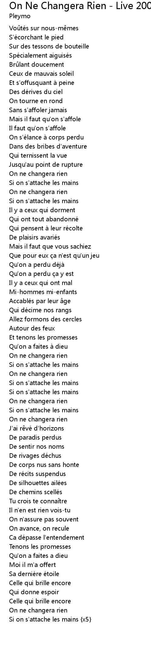 | 歌曲 | On Ne Changera Rien - Live 2005 |