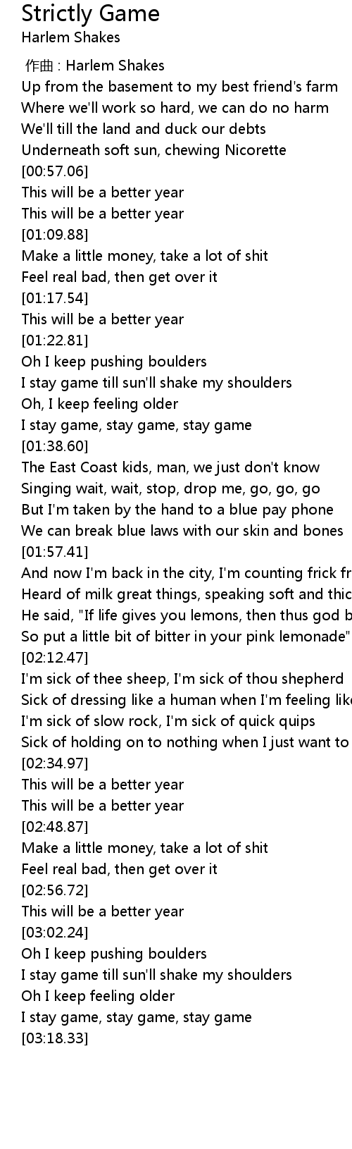| [00:00.00] | zuo qu : Harlem Shakes |