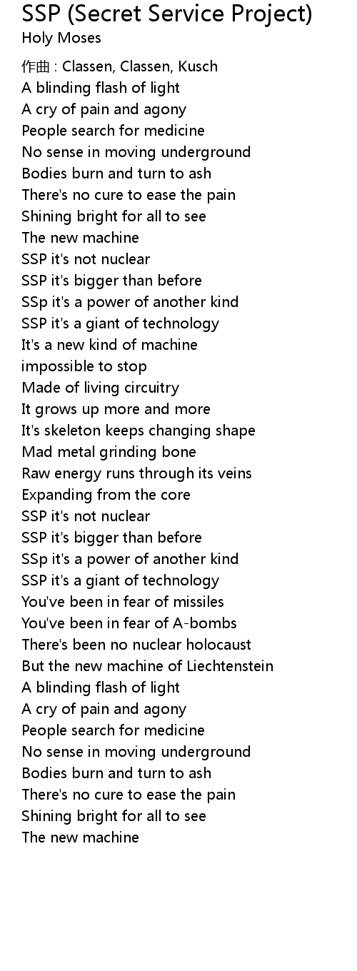 | 歌曲 | SSP (Secret Service Project) |