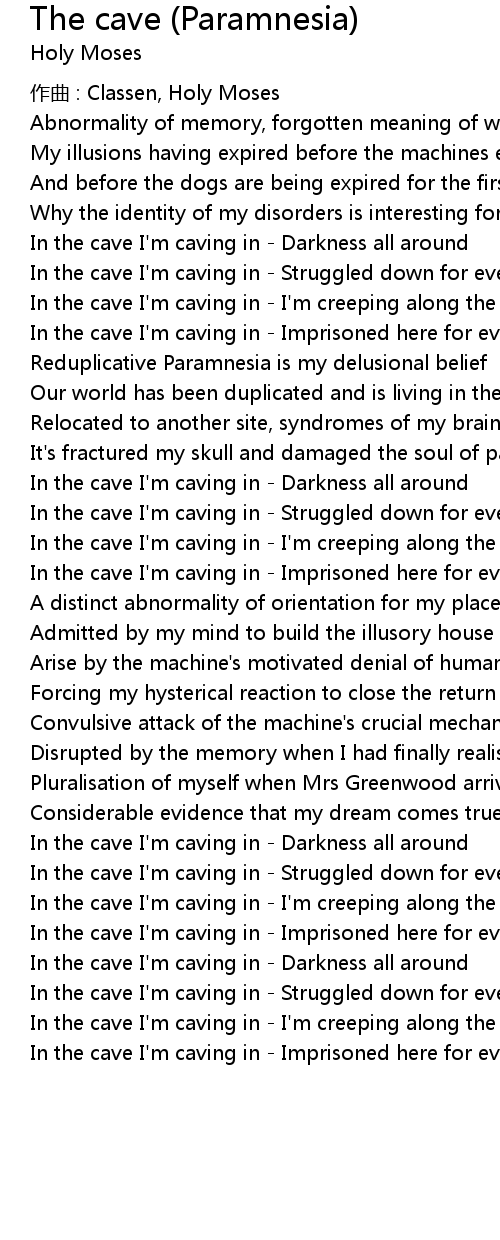 | In the cave I'm caving in - Imprisoned here for ever more | |