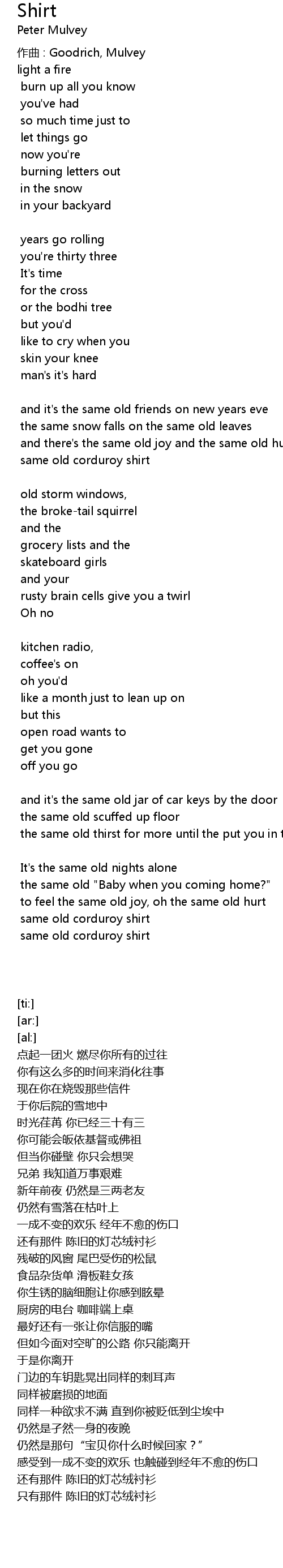 | [02:53.32] | 只有那件 陈旧的灯芯绒衬衫 |