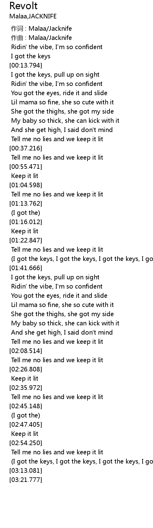 | [01:32.590] | (I got the keys, I got the keys, I got the keys, I got the keys) |