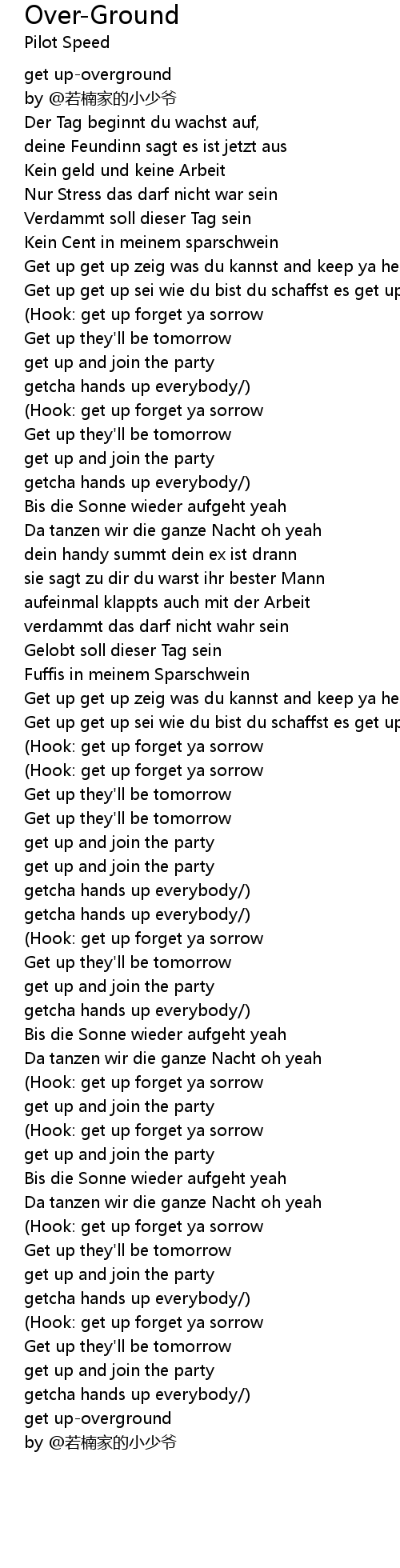 | [00:32.36] | Get up get up zeig was du kannst and keep ya head up |