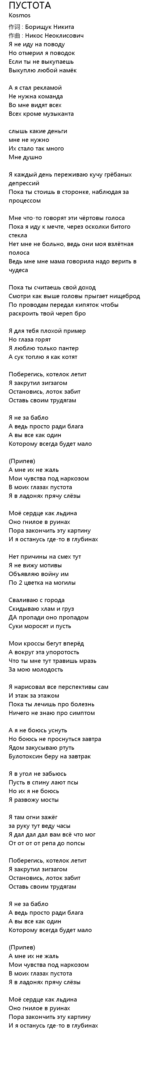 ПУСТОТА 歌词
