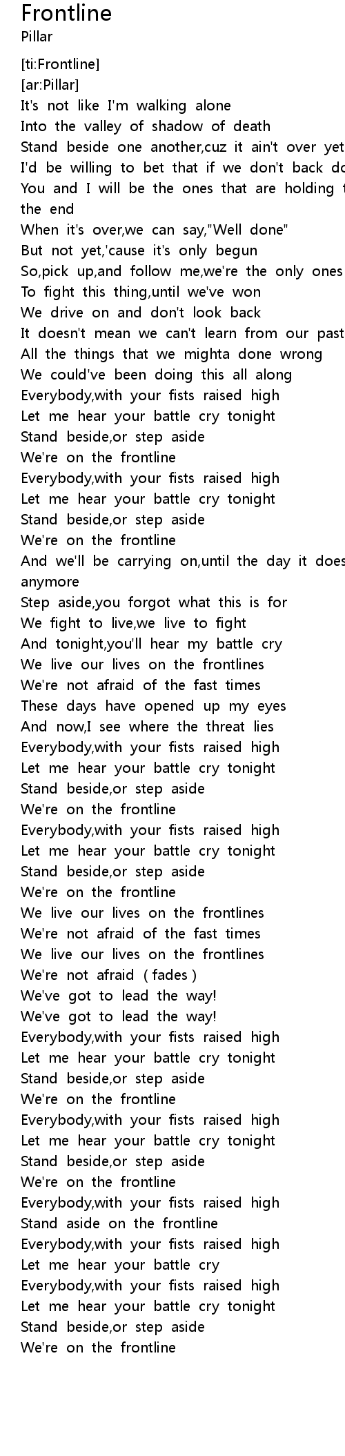 | [01:08.626] | And tonight, you' ll hear my battle cry |