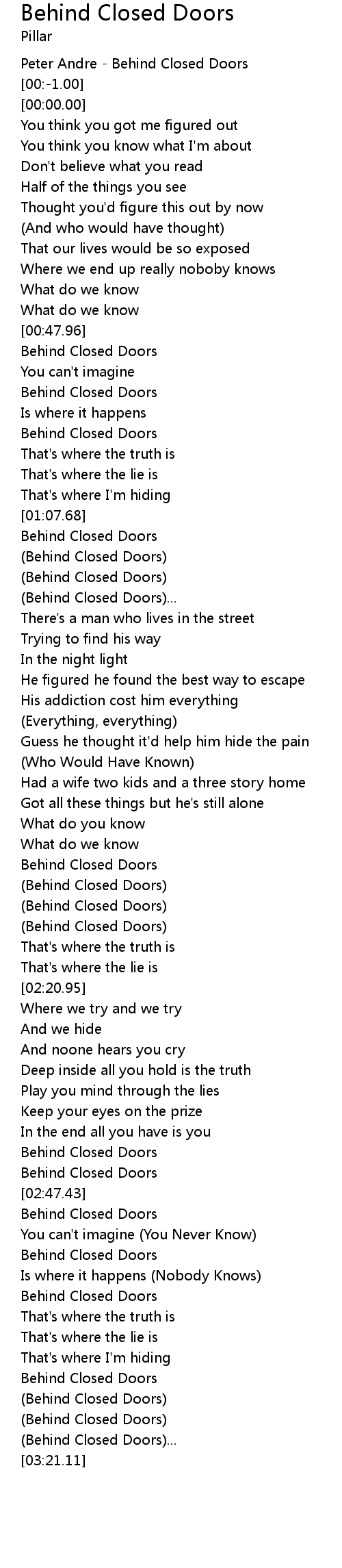 | [03:04.53] | Behind Closed Doors |