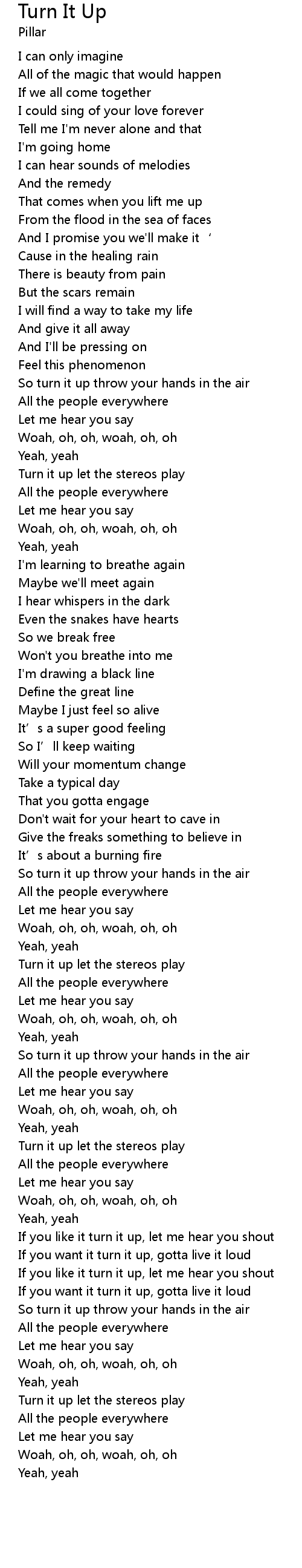 | So turn it up throw your hands in the air | |