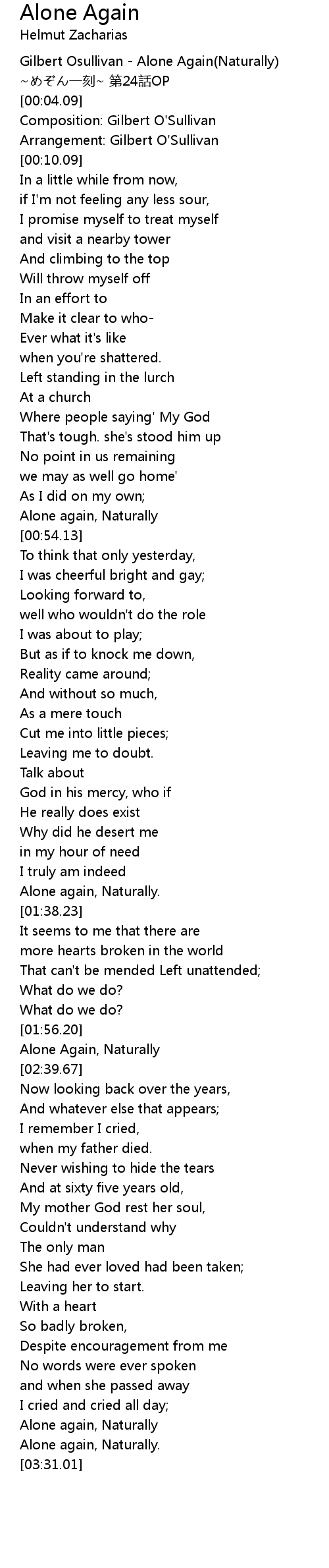 | [00:00.00] | Gilbert Osullivan Alone Again Naturally |