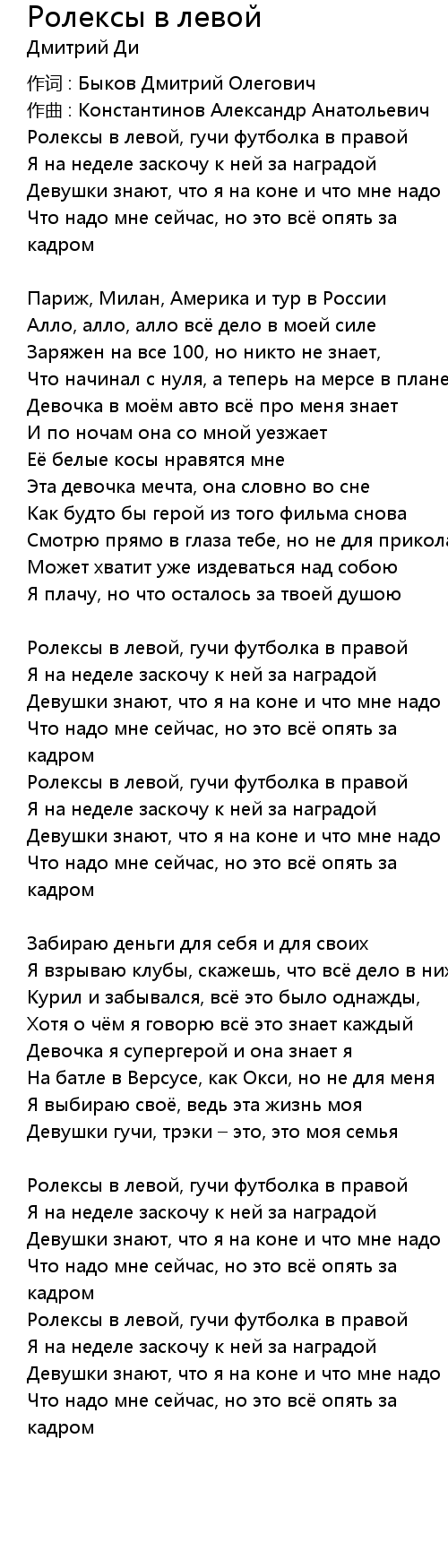 作词 : Быков Дмитрий Олегович |