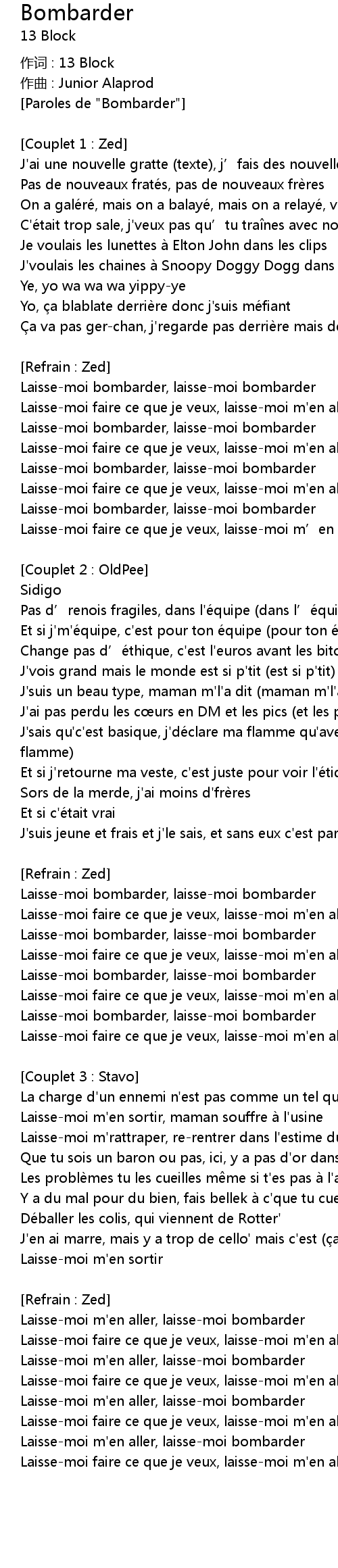 | Paroles de " Bombarder" | |