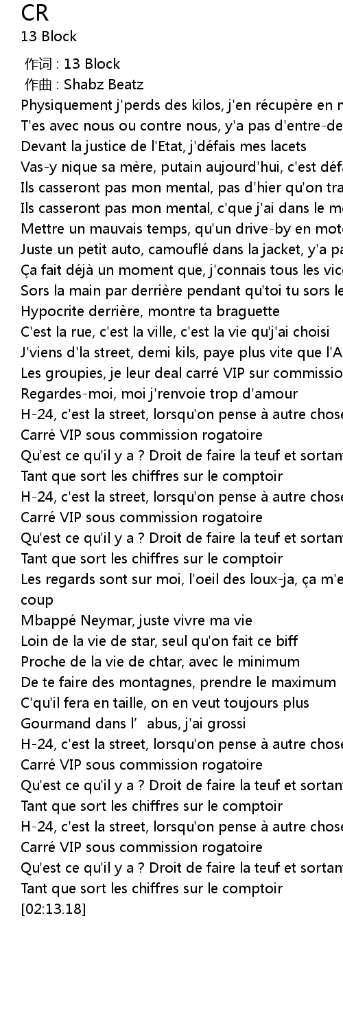| [00:51.24] | J'viens d'la street, demi kils, paye plus vite que l'ADAMI |