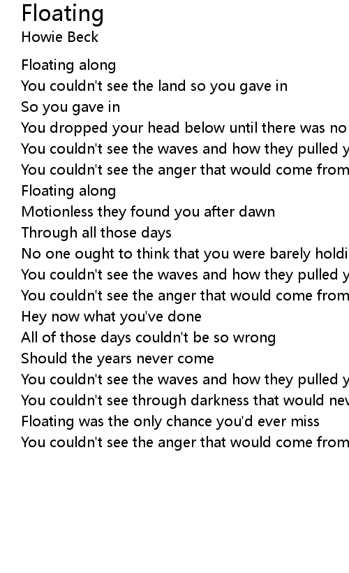Floating was the only chance you'd ever miss |