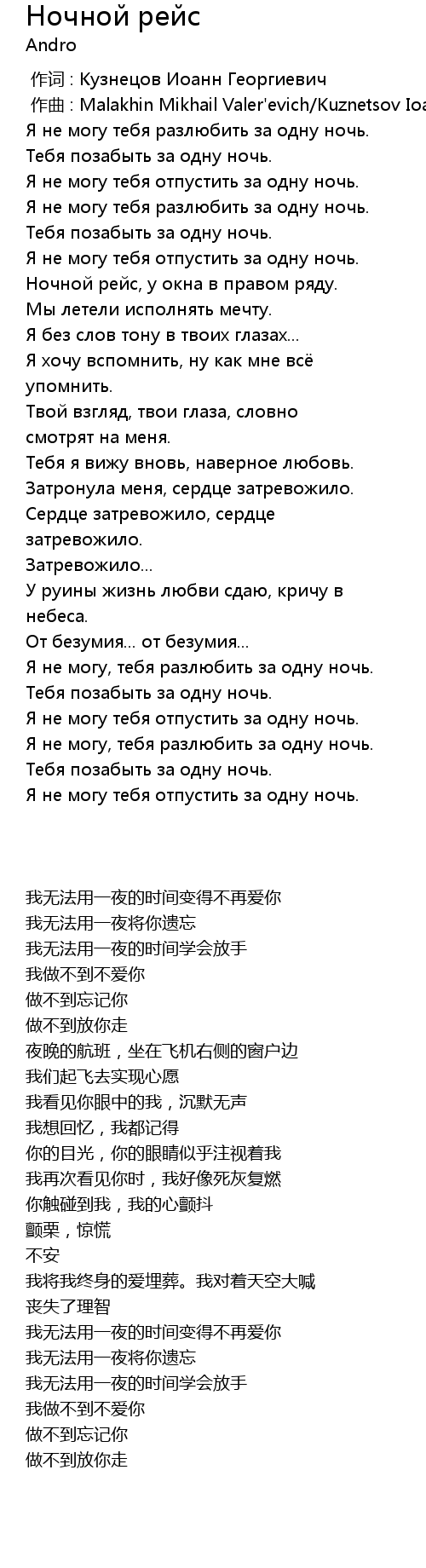 | 歌曲 | Ночной рейс |