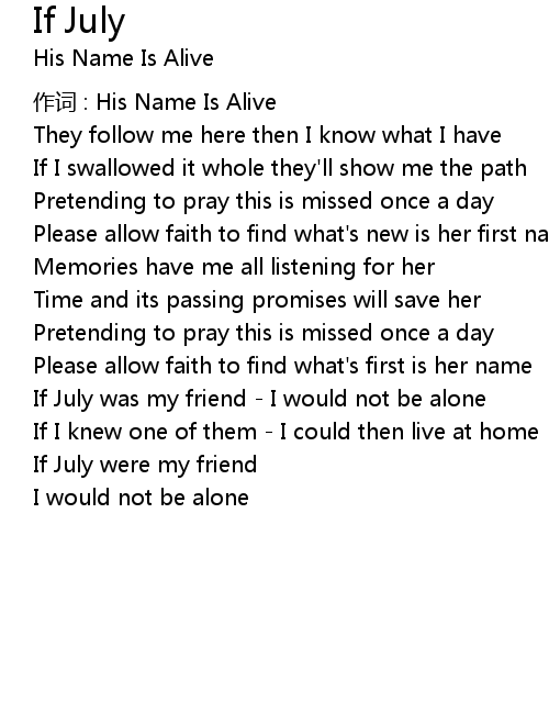 | 作词 : His Name Is Alive | |