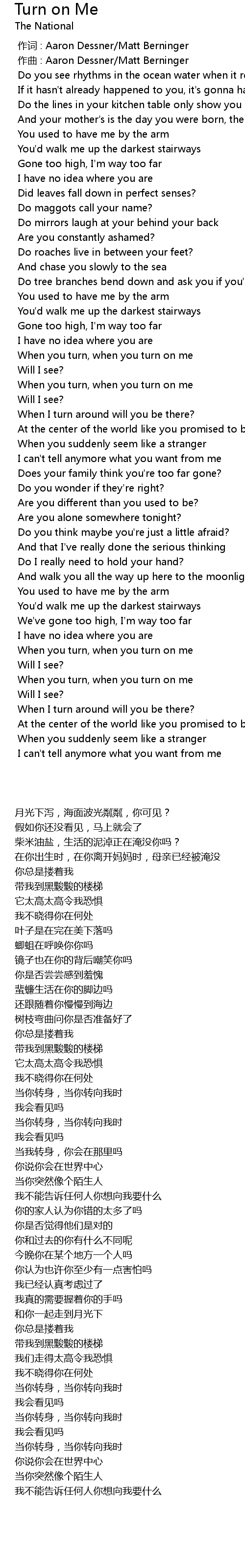 | [00:01.000] | 作曲 : Aaron Dessner/Matt Berninger |