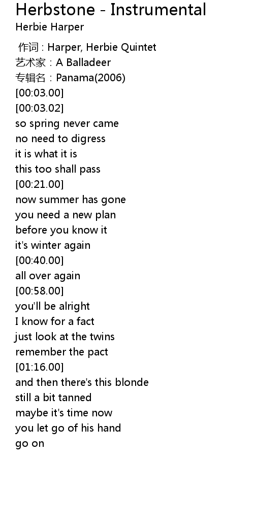 | [00:00.00] | zuò cí : Harper, Herbie Quintet |