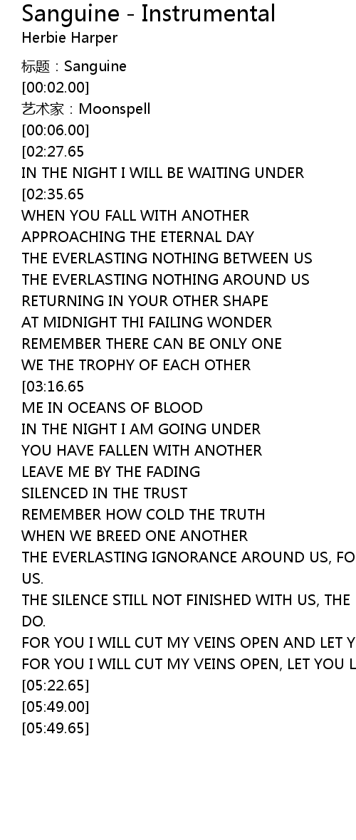 | [00:00.00] | biāo tí: Sanguine |