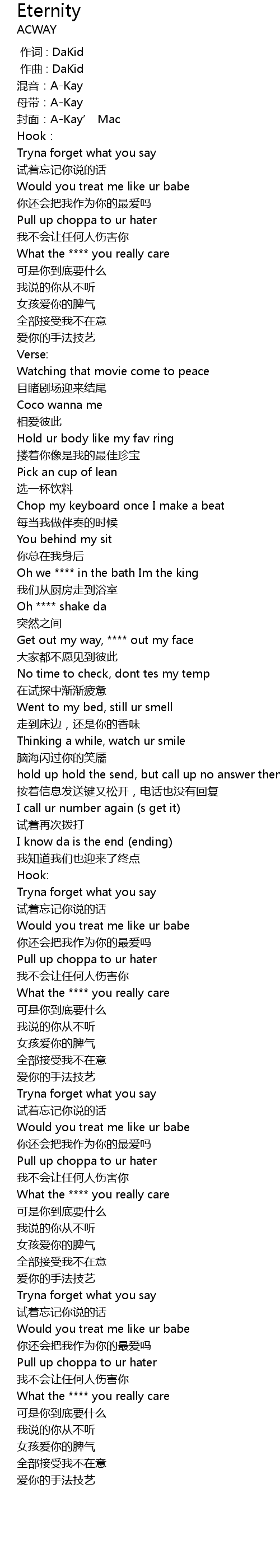 | [01:00.836] | Oh we **** in the bath Im the king |