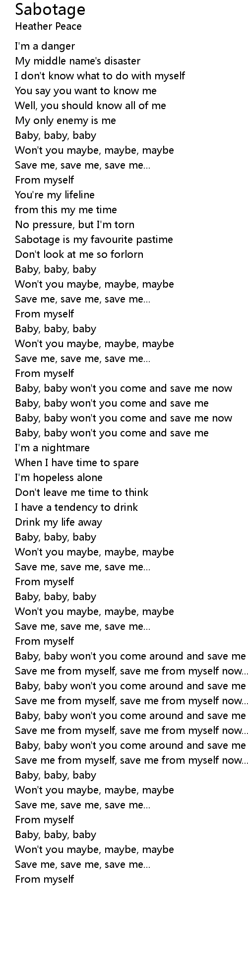 Baby, baby won't you come around and save me from myself |
