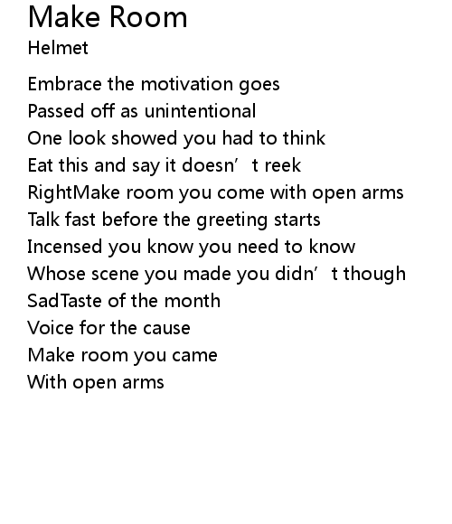 | RightMake room you come with open arms | |