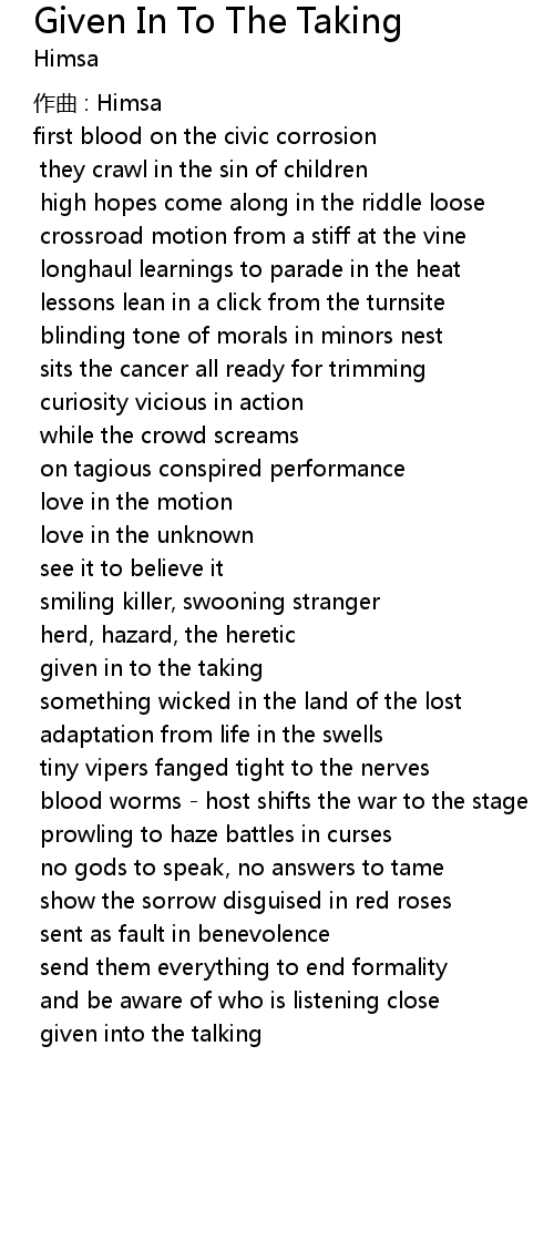 | 歌曲 | Given In To The Taking |