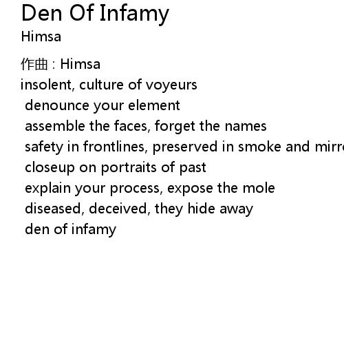 | 歌曲 | Den Of Infamy |