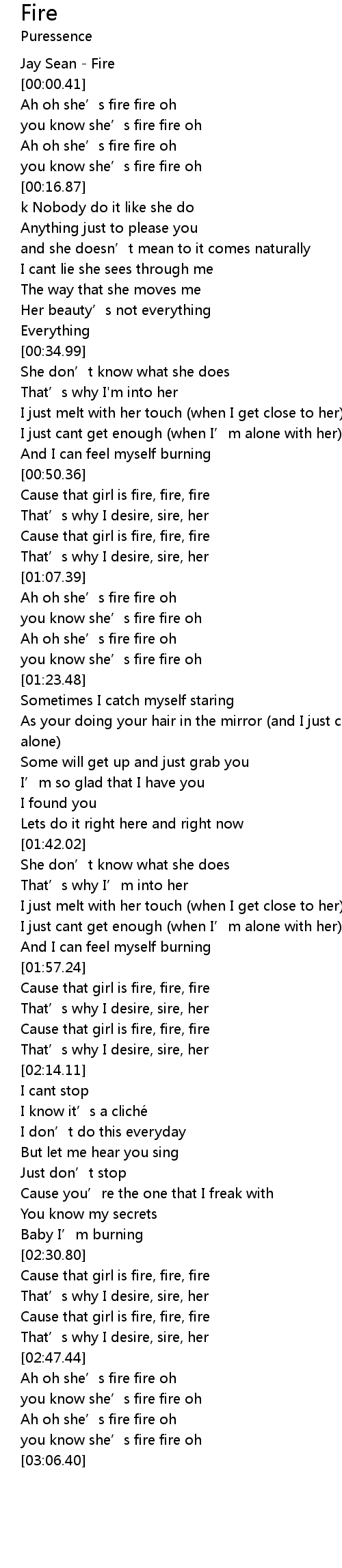 | [02:31.14] | Cause that girl is fire, fire, fire |