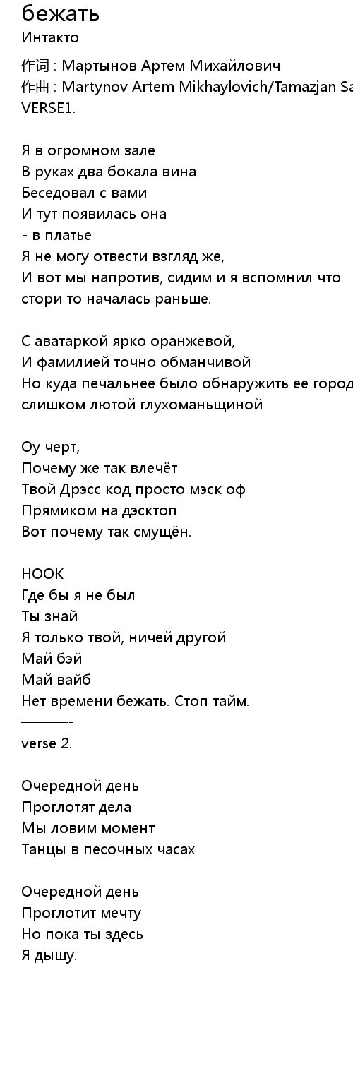 бежать 歌词