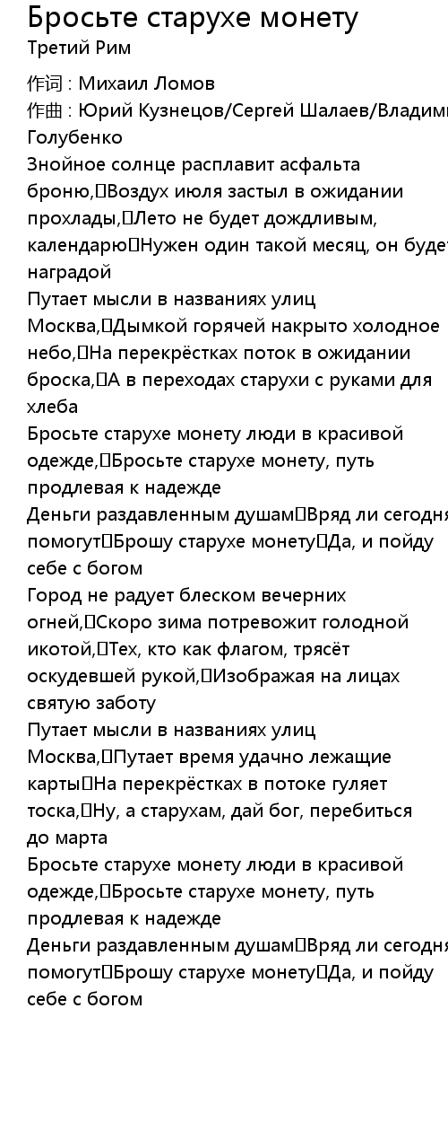 Бросьте старухе монету, путь продлевая к надежде |