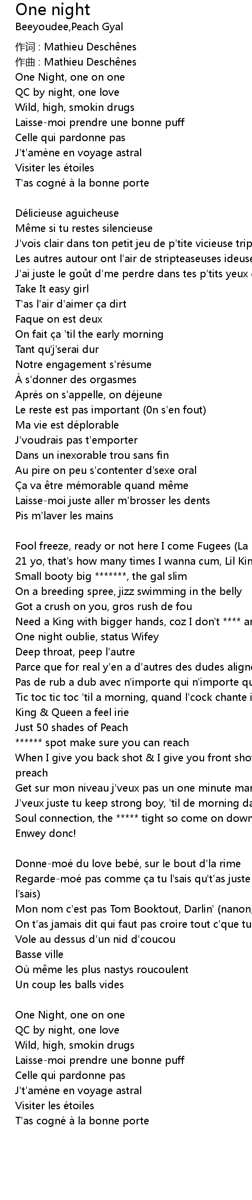 | Donne-moé du love bebé, sur le bout d'la rime | |